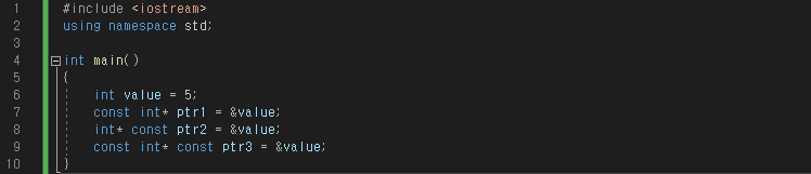 포인터 변수에도 const 키워드를 사용할 수 있다.