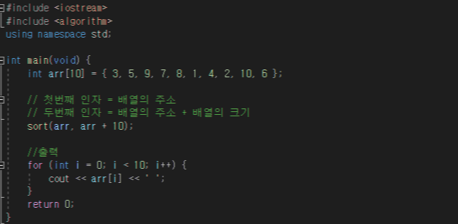 - sort는 <algorithm> 헤더파일에 있고 정렬을 해주는 함수이다.