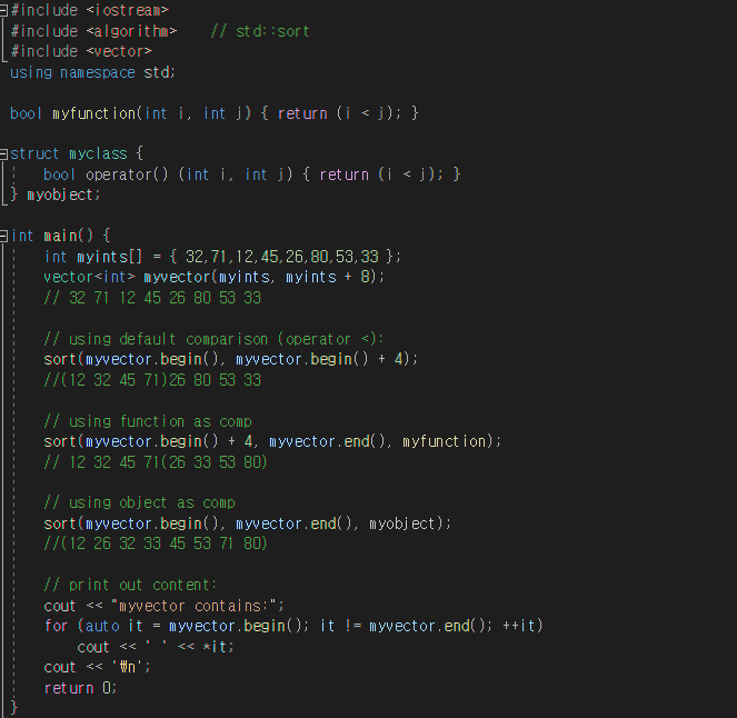 custom (2)template void sort (RandomAccessIterator first, RandomAccessIterator last, Compare comp);